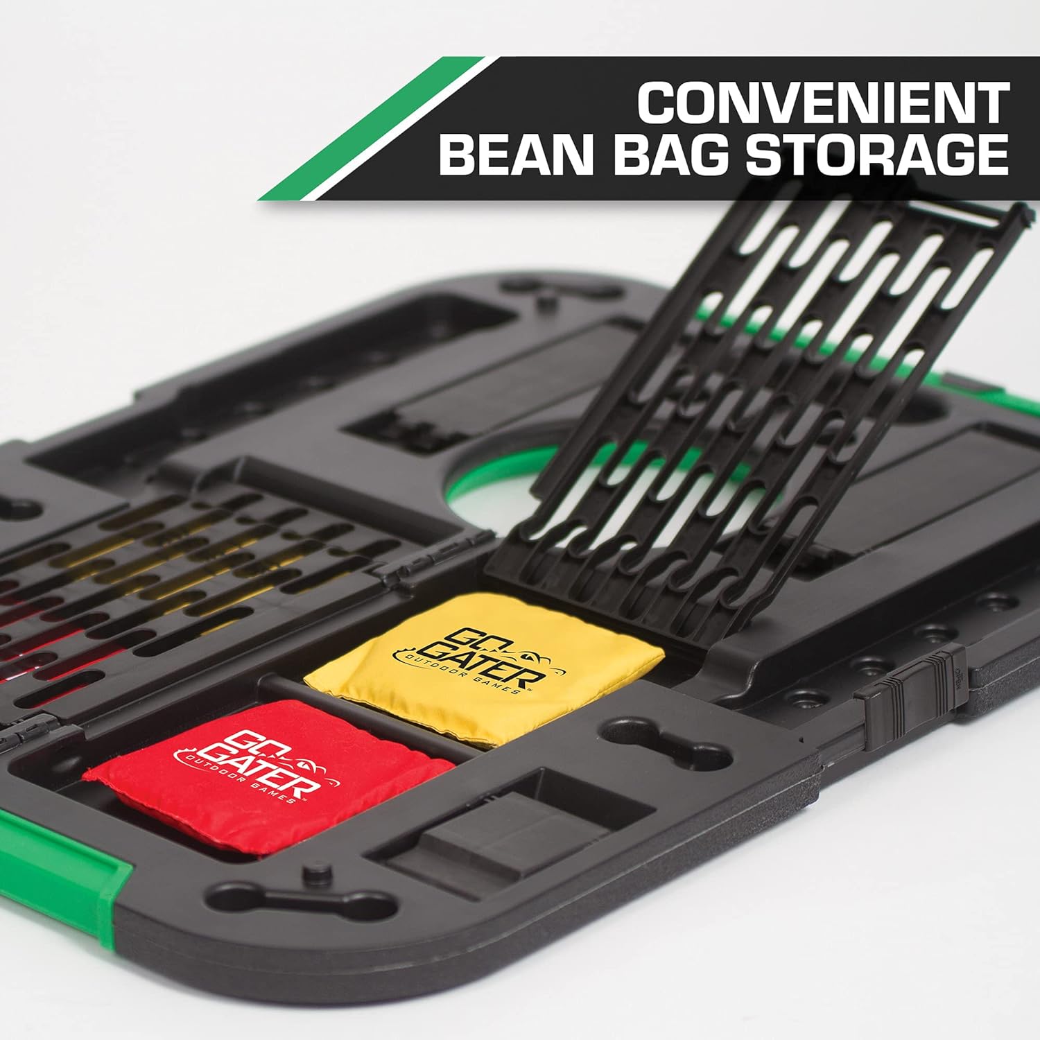 - Fácil transporte y almacenamiento: el juego de Cornhole de viaje definitivo, este juego tiene asas de transporte portátiles y compartimentos de almacenamiento internos. Se pliega y empaqueta fácilmente en un espacio limitado del tronco.