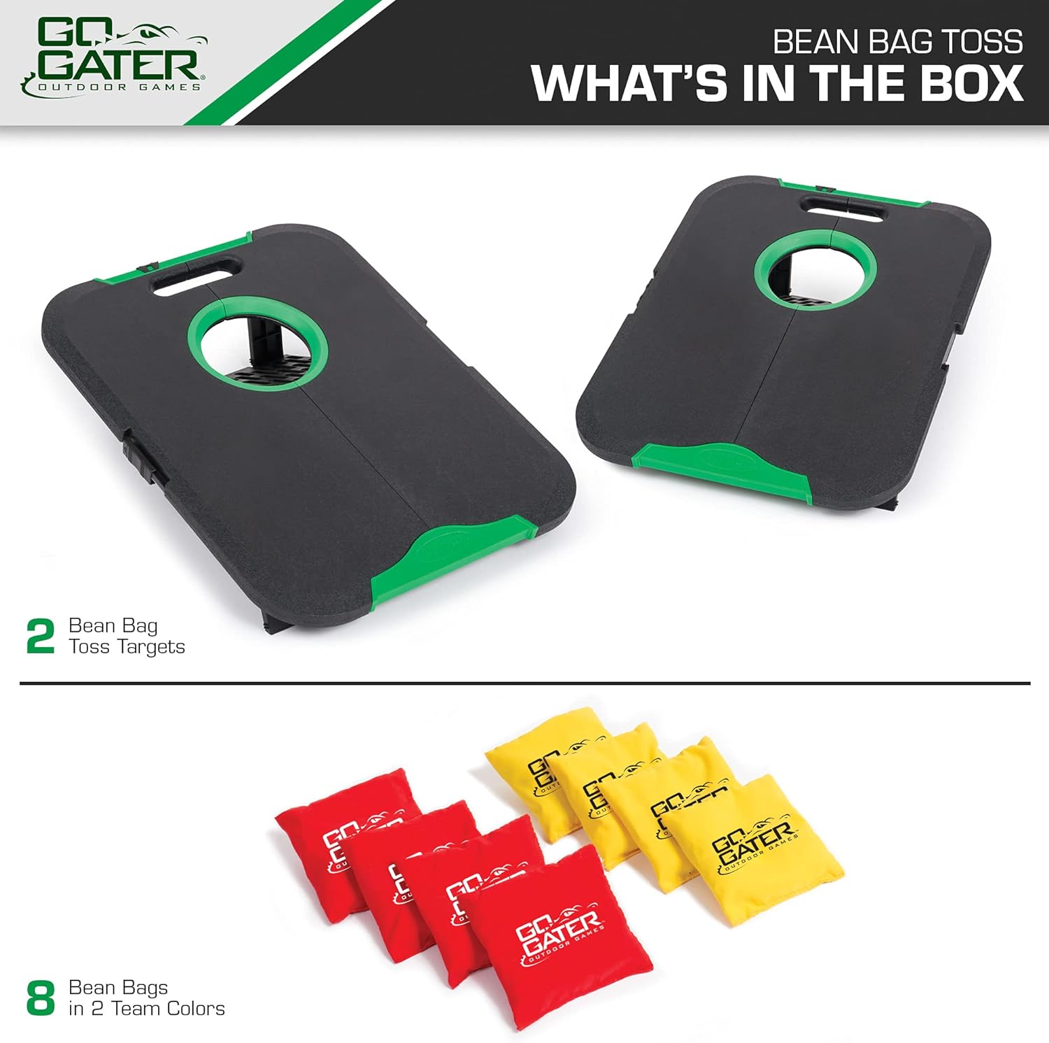 - El juego incluye: (2) tableros de plástico impermeables de 24 x 18 pulgadas y (8) pufs de 4 x 4 pulgadas en 2 colores del equipo. Perfecto para un juego de recogida en el césped o en el parque local. Lanzar, anotar y ganar.