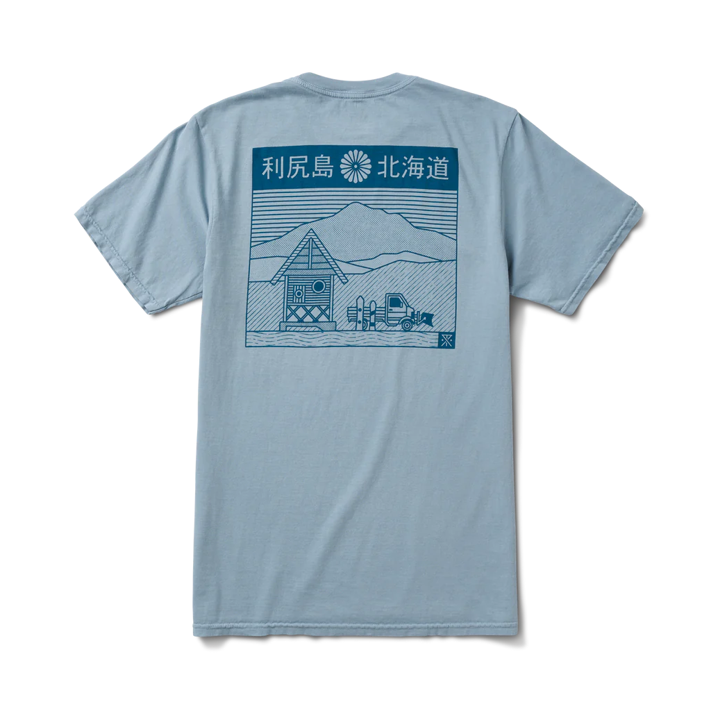 Un gráfico inspirado en los antiguos sellos postales japoneses coleccionados por algunos miembros de la tripulación en Hokkaido a lo largo del camino, este evoca la aventura de Roark en splitboard en la pequeña y nevada isla de Rishiri.