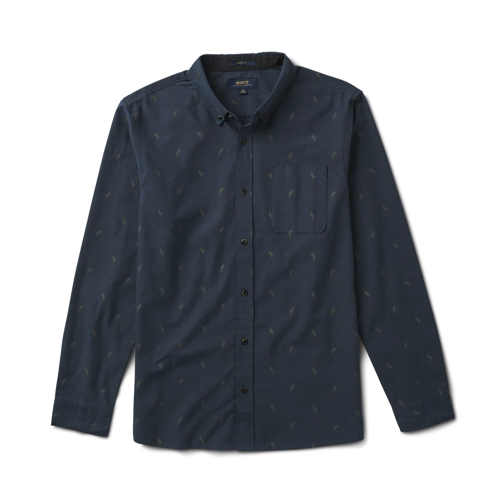 Esta camisa de estilo oxford está confeccionada con una mezcla de 60 % algodón orgánico y 40 % poliéster reciclado e incluye funciones de uso diario como componentes que absorben la humedad y antiolor.