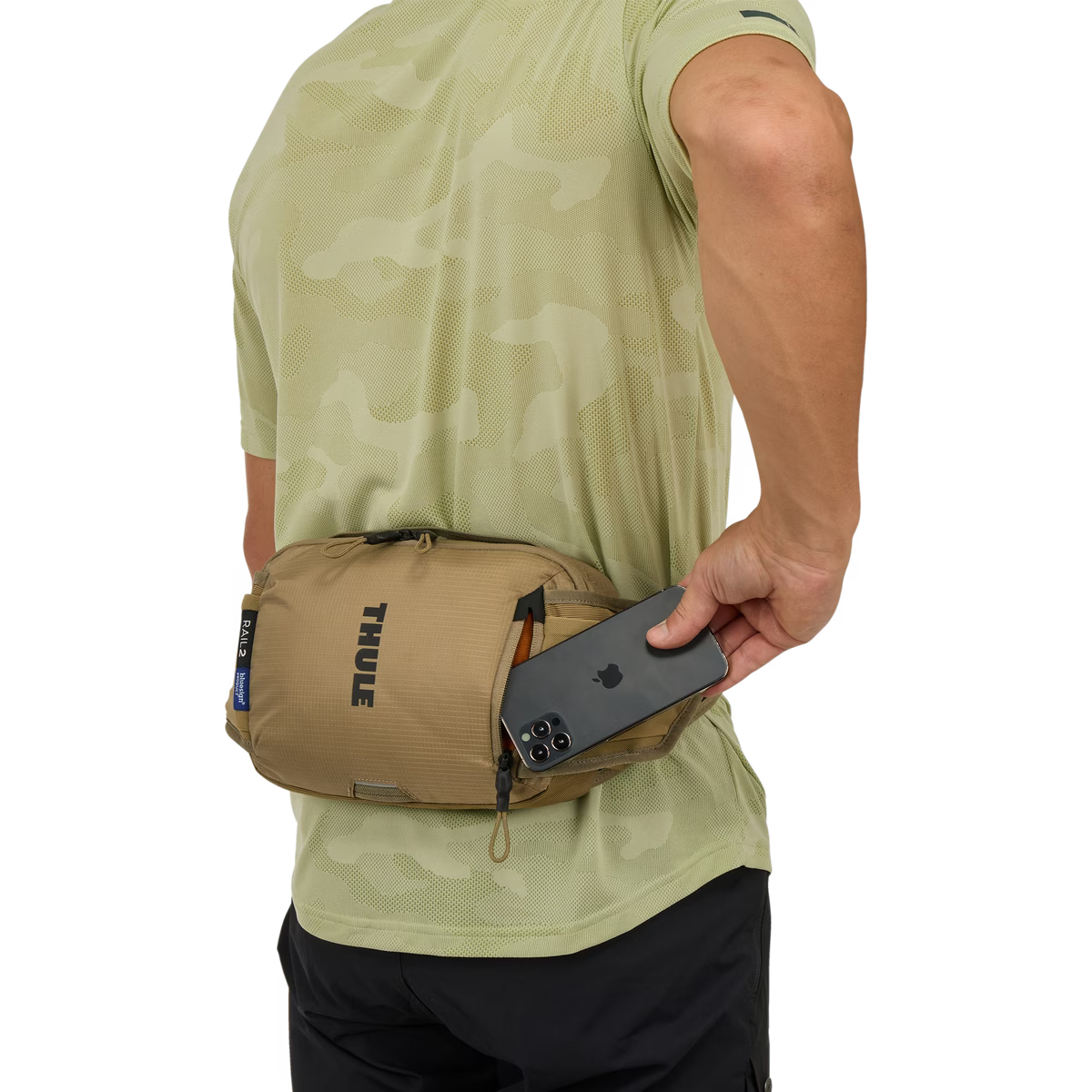 La riñonera Thule Rail de 2L es cómoda y versátil con almacenamiento para botellas de agua, perfecta para recorridos de 1 a 3 horas