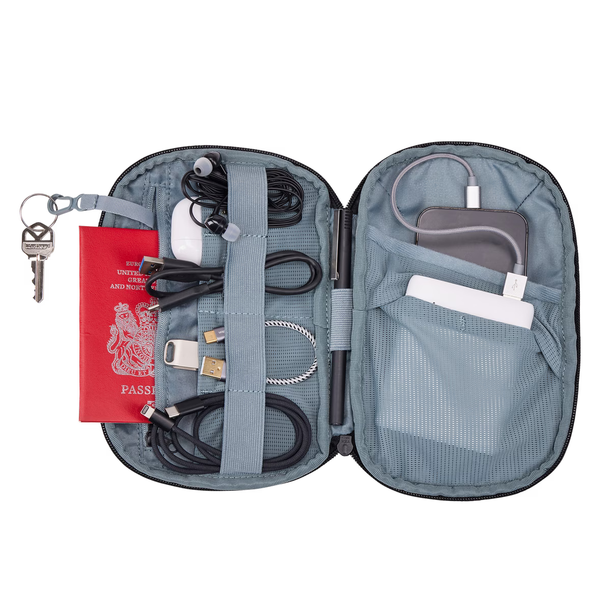 El Thule Subterra 2 Powershuttle ofrece un almacenamiento pensado para cargadores, cables, dispositivos electrónicos pequeños, bolígrafos y otros artículos.