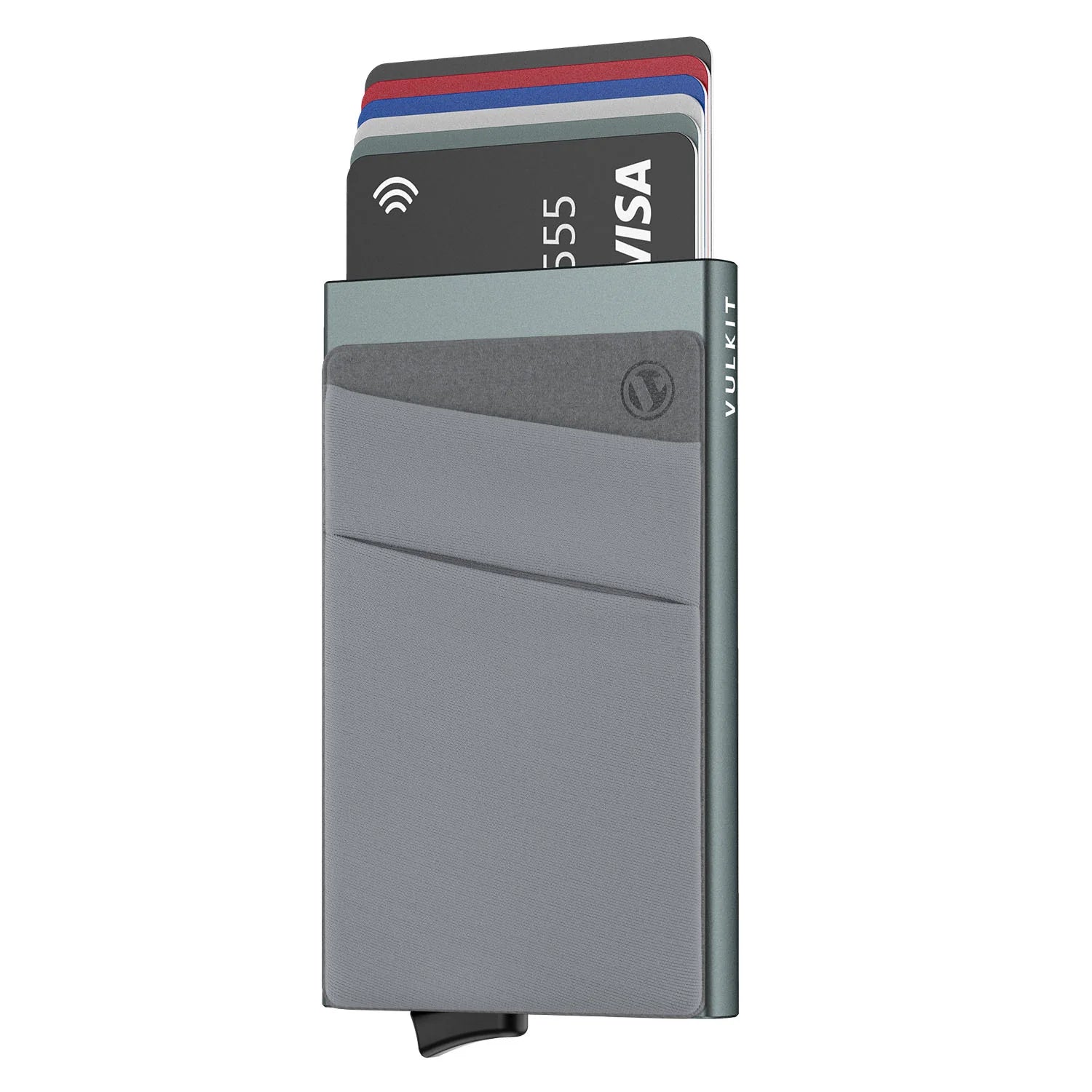 El tarjetero ultradelgado VULKIT está hecho de una carcasa de aluminio resistente para evitar que se aprieten las identificaciones y las tarjetas de crédito y utiliza tecnología avanzada de aluminio para proteger las tarjetas de crédito de comunicaciones inalámbricas innecesarias, su cuerpo compacto es más fácil de transportar y poner en cualquier bolsillo.