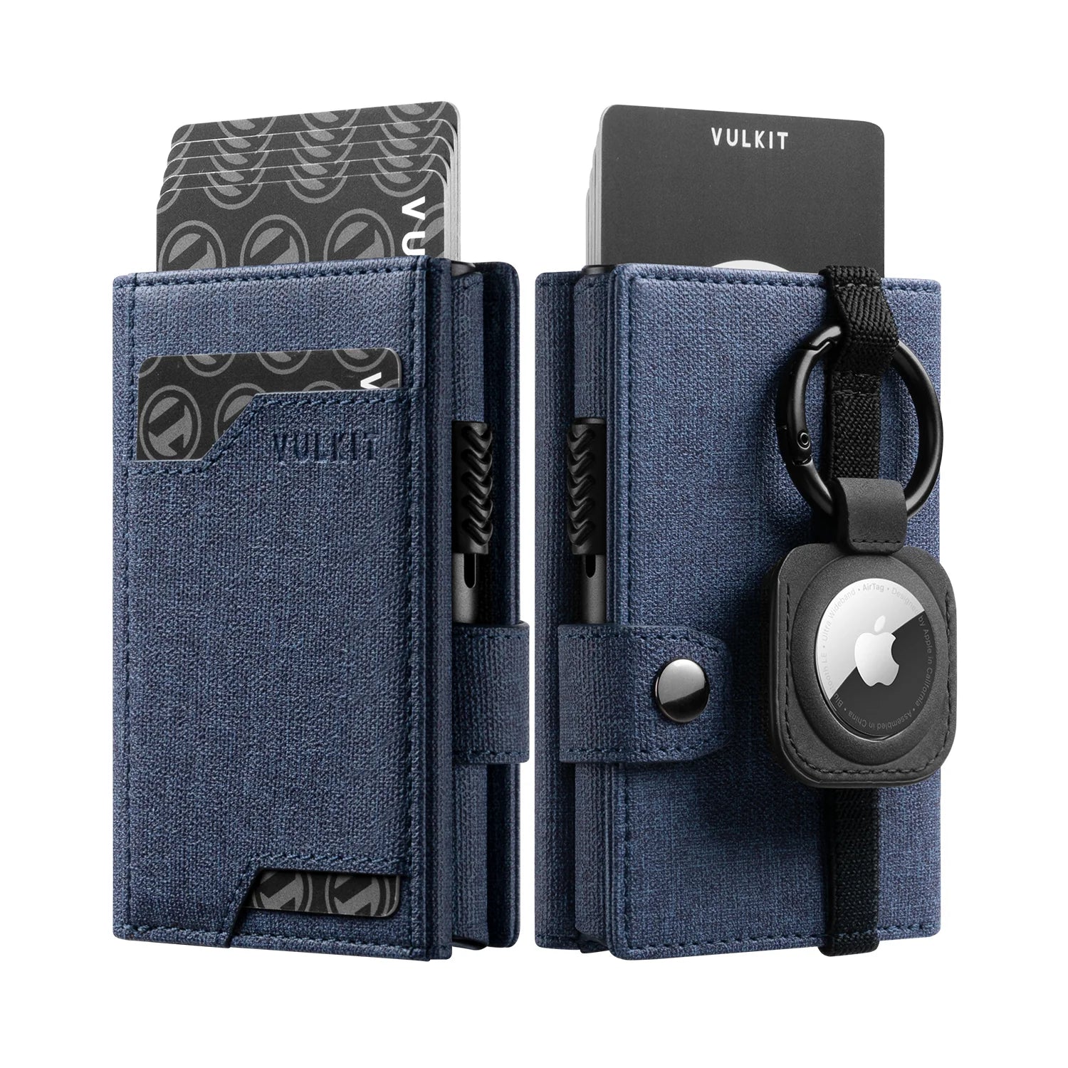 - CAPACIDAD PRÁCTICA - Diseñado para guardar 5 tarjetas de tamaño estándar en un estuche de aluminio, 3 ranuras para tarjetas exprés, 1 ranura revisable para una tarjeta de identificación o licencia de conducir, 2 ranuras para tarjetas ocultas, 1 compartimento para billetes, 1 soporte para airtag con llavero extraíble.