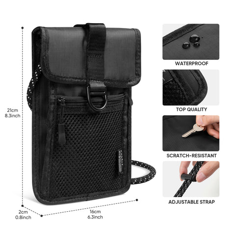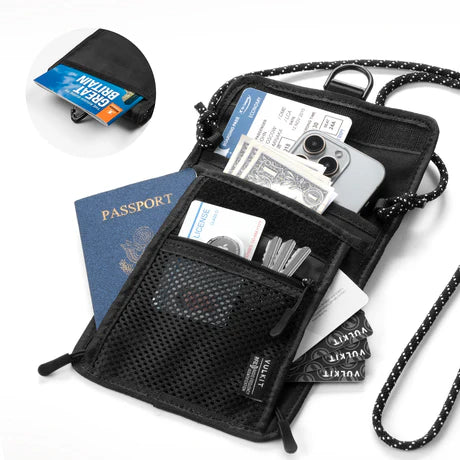 DISEÑO PROFESIONAL PARA VIAJEROS: Cartera de cuello de viaje de diseño delgado para diversos elementos esenciales: pasaportes, teléfono móvil, efectivo, tarjetas de crédito, licencia de identificación, tarjetas de embarque, llaves, etc. Mide 8.3 pulgadas de alto x 6.3 pulgadas de ancho (21 cm * 16 cm).