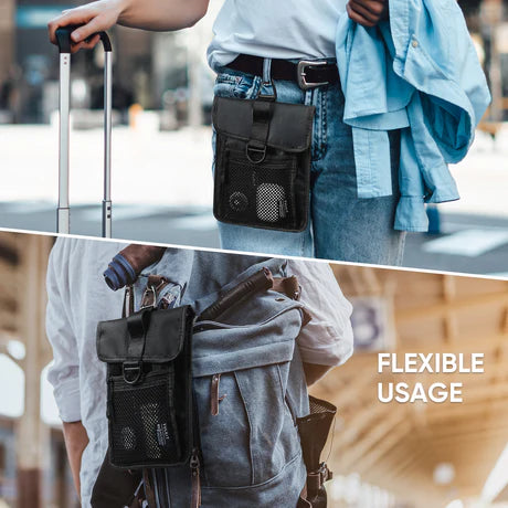 TRANSPORTE CÓMODO: Múltiples formas de uso para satisfacer sus diversas necesidades. Puedes llevarlo cruzado afuera o esconderlo dentro de tu ropa. También se puede sujetar a la trabilla del pantalón, o se puede sujetar a la mochila de viaje.